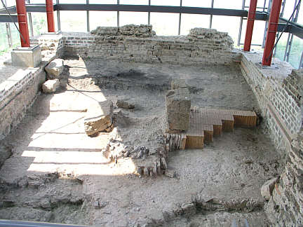 Thermen: Kaltbadebecken Hypokaust Fliesenboden Feuerstätte