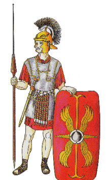 | Römischer Legionär. Mal- und Ausschneidebogen, herausgegeben von der Vereinigung der Freunde und Förderer des Archäologischen Landesmuseums Baden-Württemberg in Konstanz | Besuchen Sie auch die römischen Überreste in Ladenburg, Badenweiler oder Augst |