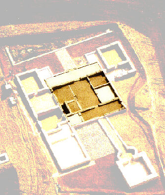 das Mauerviereck der ersten Baustufe, das dann im 2. Viertel des