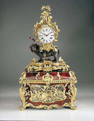 Kaminuhr mit Flötenspielwerk, 1750/60, Paris, Schildpatt, vergoldete Bronze, BLM Foto: Badisches Landesmuseum, Thomas Goldschmidt