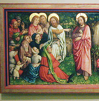 das Lamm Gottes") auf Christus verweist, rechts der Kampf des