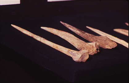Zugespitzte Werkzeuge aus Knochen, z.B. zum Vorbohren von Löchern vor dem Nähen