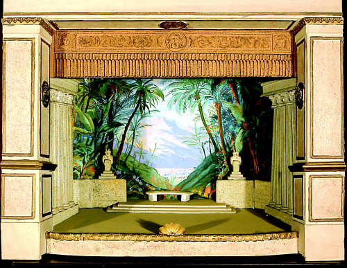Bühnenbildmodell zur Zauberflöte, Palmenhain (II, 1), Königliches Schauspiel- und Opernhaus, Berlin 1816, nach einem Bühnenbild von Karl Friedrich Schinkel (Salzburg, Internationale Stiftung Mozarteum)