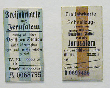 Um der Fantasie, die Juden nach Palästina "zurück"zuschicken, Ausdruck zu geben, wurden mitunter solche "Freifahrkarten" verteilt. Heute würde das als "Mobbing" bezeichnet.