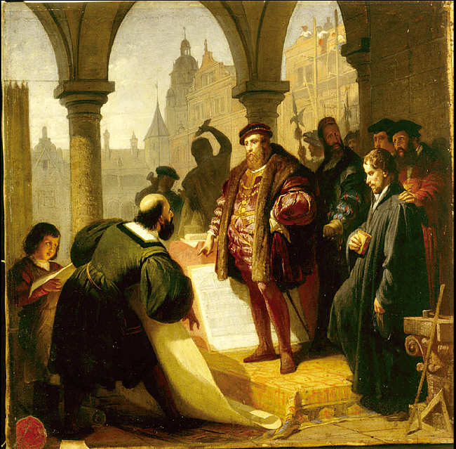 Kurfürst Ottheinrich, Melanchthon und der Architekt des Ottheinrichsbaus im Heidelberger Schloss, um 1862,