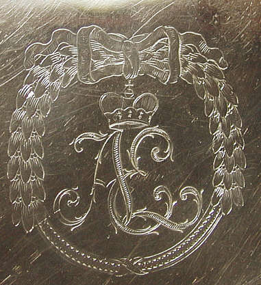 Monogramm der Kurfürstin Elisabeth Augusta auf der Wasserkanne |
