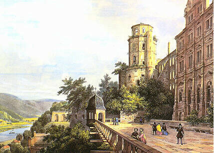 Die Schlossterrasse diente schon in kurfürstlicher Zeit als Aussichtsplattform über die Stadt, war aber notwendig geworden, als durch den Bau des Friedrichsbaus die alte Wegführung von der Stadt hoch verändert worden war. Der Blick von der Schlossterrasse auf die Altstadt ist ein Muss für jeden Heidelberg-Besucher.