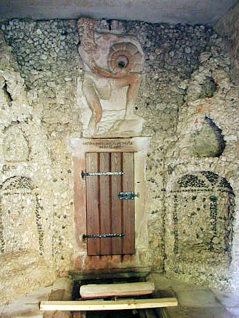 Dennoch ließ Carl Theodor 1766 eine Quelle im so genannten Maltesergraben unterhalb des gesprengten Krautturms fassen und dafür ein Brunnenhaus mit Grotteninkrustation errichten. Dafür ließ er eine Stuckfigur aus der zweifellos noch bestehenden Kleinen Grotte hier anbringen. Die Inschrift zeigt als Chronogramm die Jahreszahl 1766.