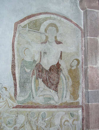 Nördliches Querhaus: Martyrium der 10000 Perser (Achatius-Legende) - Thronender Christus zwischen Maria und Johannes dem Täufer (Deesis), mit dem Schwert der Weisheit, das aus seinem Mund fährt.