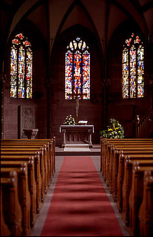Chor mit 3/8-Schluss, die Kapitelle der Dienste mit Brustbildern