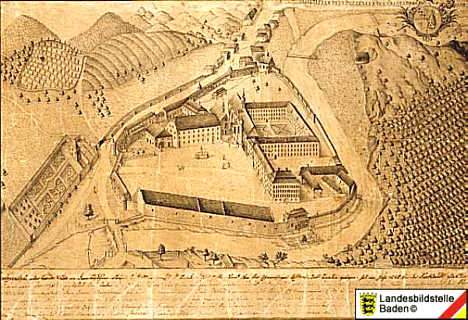 Stich zeigt den Zustand der Klosteranlage nach dem Umbau