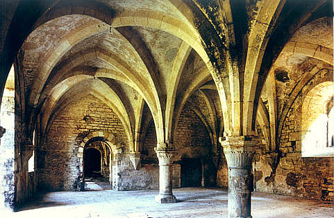 Unter den Nebengebäuden des Klosters Forntenay beeindruckt vor allem die Schmiede durch ihre architektonische Ausgestaltung. Sie ist wie das Skriptorium ein mit massiven Kreuzrippen gewölbter zweischiffiger Raum. |