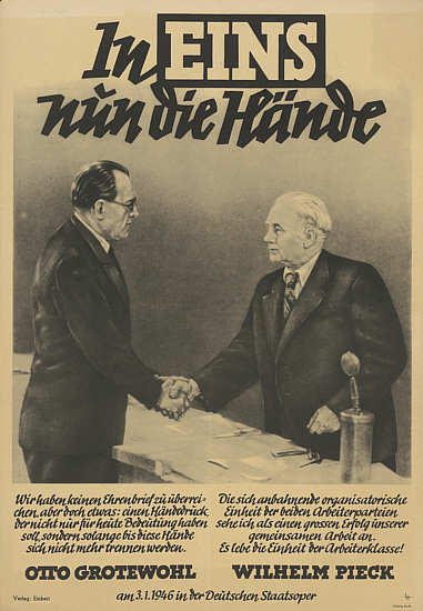 symbolische Handschlag zwischen Wilhelm Pieck als Vertreter