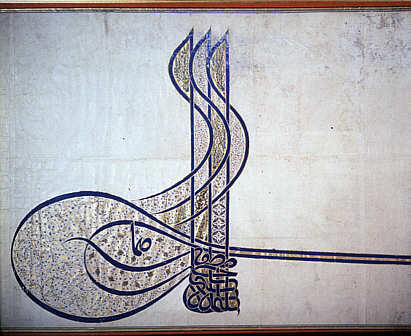 Tugra (Namenszug) des Sultans Süleyman des Prächtigen, c.1540-50, Istanbul Deckfarbe, Tinte und Gold auf Papier, 158 x 240 cm Topkapi Saray Museum, Istanbul Foto Hadiye Cangokce