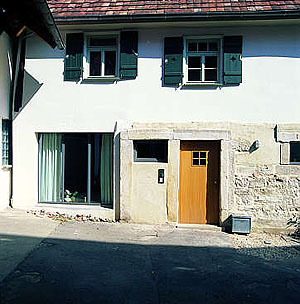 Um 1800 errichtet, war das Gebäude früher nur im Obergeschoss zu Wohnzwecken ausgebaut. Im steinernen Sockelgeschoss befanden sich die Ställe, die offene Bühne diente als Lager.
