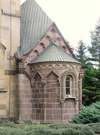 polygonal geschlossen; der Verzicht auf eine Apsis bedeutet in der Hirsauer