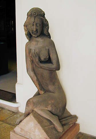 Hier in den Bildern fünf der Sieben Todsünden, noch aus der alten Aufstellung (teilweise entsprechend ihrer Position am Münster und in der Neupräsentation als Bild gedreht): Unzucht / Wollust, Unmäßigkeit, Zorn, Geiz und Hochmut.