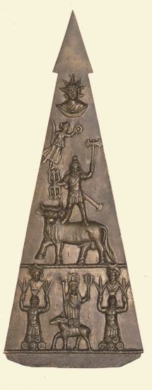Bronzenes Votivdreieck für die Gottheit Jupiter Dolichenus