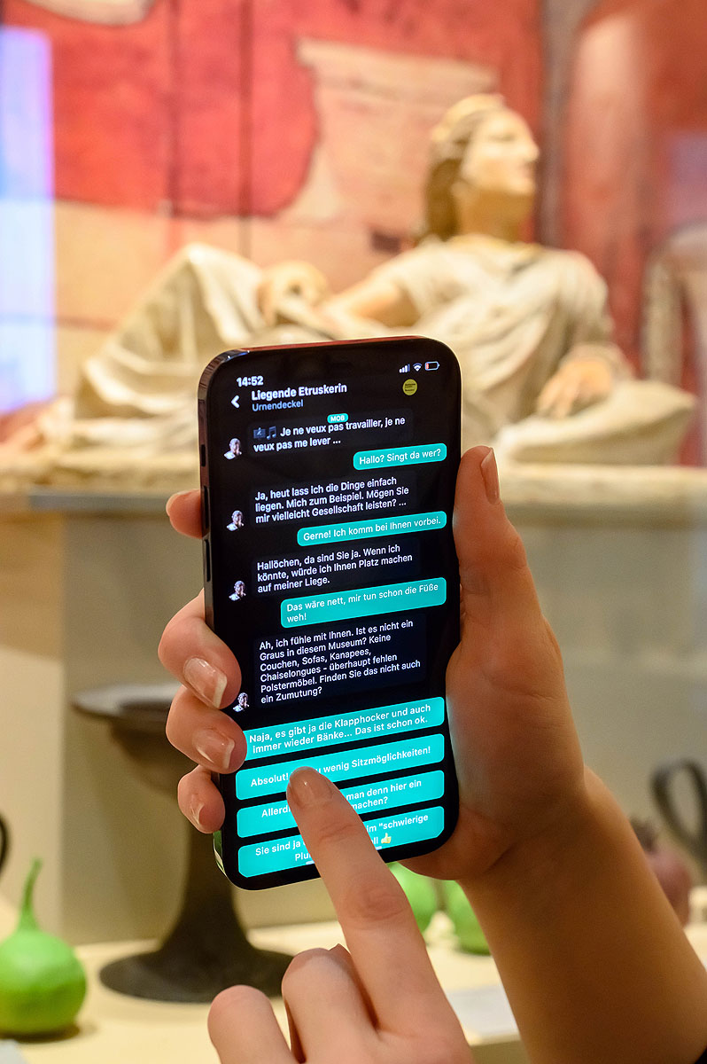 Wenn die Chemie stimmt, können die Nutzerinnen und Nutzer mit den Objekten ihrer Wahl chatten und sie im Museum treffen. Vielleicht funkt es ja und diese Liebe hält für immer?! Die Besucherinnen und Besucher dürfen jedenfalls auch gerne mehrere Freundschaften knüpfen – und sich selbst oder gemeinsam mit anderen Nutzerinnen und Nutzern eine individuelle Sammlung anlegen. Die Chat-Dialoge wurden von Personen unterschiedlichen Alters, dem Kollegium des Museums sowie Mitgliedern des Bürgerbeirats, vollständig geskriptet. Die Gespräche bieten eine Vielzahl an Tonalitäten und können sich dank unterschiedlicher Antwortmöglichkeiten in mehrere Richtungen entwickeln. Die Reaktion der manchmal sehr eigenwilligen Objekte sorgt immer wieder für Überraschungen. Während die App „Dein Geschenk“ die Erstellung von user-generated content ermöglicht, bietet „Mein Objekt“ einen inhaltlich-emotionalen Zugang zu den Sammlungen.