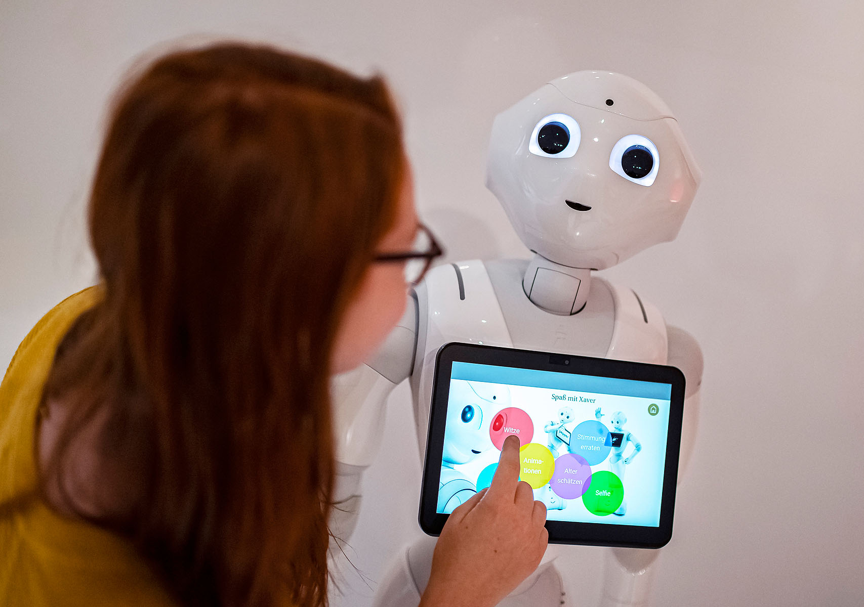 „Hallo mein Name ist Xaver” – 2021 rollt 1,20 m geballte Roboter-Expertise auf die Besucherinnen und Besucher zu. Als künstlich intelligenter Info-Punkt begrüßt der niedliche Android mit Kulleraugen die Gäste. In den letzten Wochen und Monaten war Xaver beim Team des Badischen Landesmuseums in der Schule und entwickelte seine kognitiven und sensorischen Fähigkeiten weiter. Nun kann er nicht nur Informationen über die Ausstellungen, das neue Museumskonzept oder aktuelle Veranstaltungen liefern, sondern sogar menschliches Verhalten nachahmen und Emotionen deuten: Für eine Quiz- App wurde Xaver mit kleinen Lügengeschichten programmiert. Die Besucherinnen und Besucher müssen nun erkennen, ob der Pepper-Roboter die Wahrheit spricht oder flunkert. Darüber hinaus wird Xaver aktuell zum kleinsten Tour-Guide des Museums ausgebildet. Dabei erkennt er die Stimmungslage der Nutzerinnen und Nutzer und schlägt entsprechende Inhalte für die Kurzführung vor. Wer weiß, wann Xaver das erste Interview gibt! Der erste Pepper-Roboter wurde 2019 durch die Freunde des Badischen Landesmuseums e.V. finanziert. Mit den Mitteln für das Projekt „Creative Collections 2.0“ im Rahmen der Förderlinie „Digitale Wege ins Museum II“ des Ministeriums für Wissenschaft, Forschung und Kunst wurde jüngst ein zweiter Pepper-Roboter für das Museum erworben.