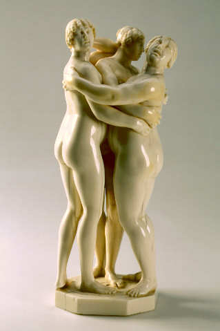 Die drei Frauen scheinen sich eher gegenseitig zu schützen als sich als "Grazien" zu präsentieren - ein Sinnbild für die Unsicherheit der Zeit