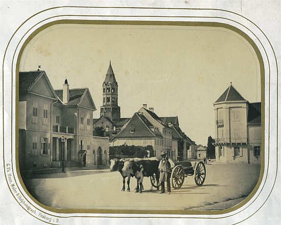 Martinstor und Bertholdsbrunnen. Das Martinstor noch ohne seinen historistischen Aufbau. G.Th.Hase, um 1860,