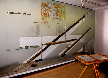 der jungsteinzeitlichen Bevölkerung (Bild unten). Hier werden sowohl Fundumstände als auch Bautechniken der Häuser dargestellt.