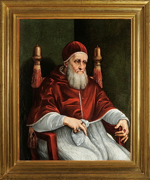 Als erster hat der Maler Raffael Julius II. in dieser für damalige Verhältnisse ungewöhnlichen Pose festgehalten. Von seinen Werken ließ sich Tizian inspirieren. Aus den weltberühmten Uffizien in Florenz kommt eines seiner Gemälde nach Mannheim.