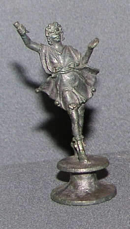2 bronzene Larenstatuetten in der traditionellen tänzelnden Haltung aus dem Haus des Oppius Gratus (IX, 6, 5)