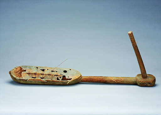 Das Pappelholz dieser Harfe ist durch den häufigen Gebrauch