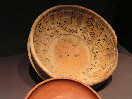 Terra-Sigillata-Geschirr erhielt vor dem Brand einen besonders fein geschlämmten Überzug, in den mittels Modeln und Negativformen die Muster eingepresst wurden. Der Überzug brannte besonders dicht.
