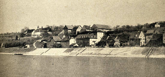 Am eingedämmten Rhein ragt das ehemalige Fischerdorf Rheinweiler mit der Rothbergischen Schlosse; vom Elsässer Ufer aus ein eigenartiges Bild, das nur wenige kennen.