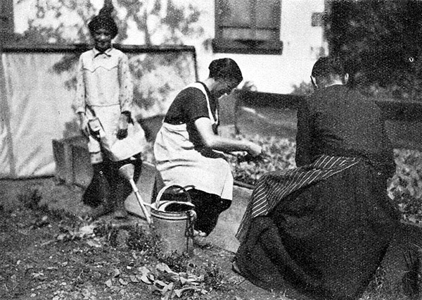 Das Einfädeln des Tabaks nach der Ernte. Frphliche LIeder