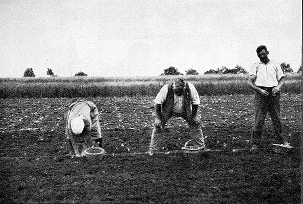 Das Auspflanzen des jungen Tabaks auf den Acker, eine mühevolle