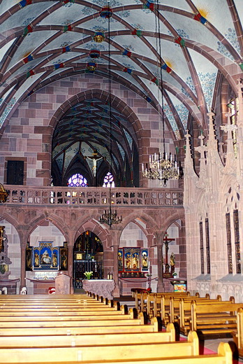 ins Mittelschiff mit Lettner und Chor. Rechts angeschnitten die