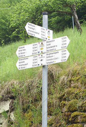 sondern an markanten Kreuzungen mit den Entfernungsangaben ausgeschildert.