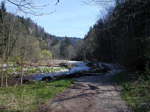 Im Talgrund liegen neben dem Flussbett