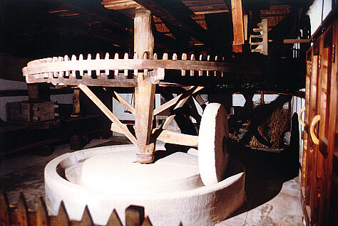 vorhanden war. Der Bach trieb das Mühlrad an, das wiederum