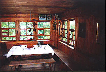 in die Stube mit der umlaufenden Sitzbank und dem Herrgottswinkel.
