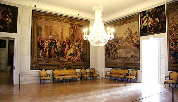 Der Coursaal, das ehemalige Zweite Vorzimmer, bietet den Rahmen für die Wandteppiche der "Jason und Medea-Serie".