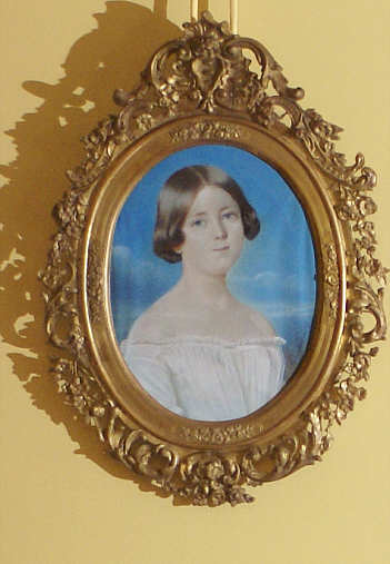 ![]() Stephanies mittlere Tochter Josephine Prinzessin von Baden (1813-1900) hatte am 21. Oktober 1834 Karl Anton Fürst von Hohenzollern-Sigmaringen (1811-1885) geheiratet. Aus der Ehe gingen sechs Kinder hervor. Die signierten und datierten Porträts zeigen drei der Kinder des fürstlich-hohenzollernschen Paares: Stephanie (1837-1859), benannt nach ihrer großherzoglich-badischen Großmutter, und ihre Brüder Anton (1841-1866) und Friedrich (1843-1904). In ovalen, aufwändig geschnitzten und vergoldeten Rahmen sind sie jeweils als Bruststücke dargestellt. Der Sigmaringer Maler Richard L. Lauchert (1823-1869) stellte die Kinder 1849 vor blauem, mit Wolken durchzogenem Himmel dar. Lauchert arbeitete dabei mit Pastellkreiden, eine Technik, die zarte Farbübergänge und feine Farbnuancen ermöglicht. Die Pastelle stammen aus dem Privaterbe von Prinzessin Marie von Belgien, der jüngsten Tochter von Fürstin Josephine. Marie hatte den Grafen von Flandern geheiratet und wurde dadurch zur Stammmutter des heutigen belgischen Königshauses.