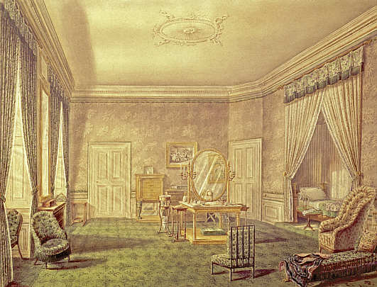 Schlafzimmer im Appartement der Großherzogin Stéphanie im Mannheimer Schloss, Aquarell von Wilhelm Dünckel, 1860. Bild: Landesmedienzentrum BW |