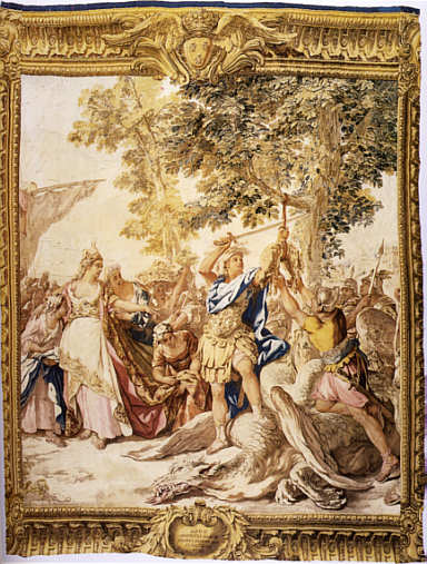Iason raubt das Goldene Vlies, nachdem Medea durch ihre Zauberkünste den Drachen, der das Vlies hütete, eingeschläfert hatte.