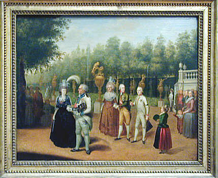 | Johann Baptist Hoechle (1734 - 1832): Kaiser Franz II. und Kurfürst Carl Theodor im Hofgarten von Schloss Nymphenburg. München, 1792 |