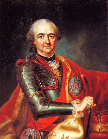 | Carl Heinrich Brandt: Kurfürst Carl Theodor von Pfalz-Bayern, um 1791 Der Kurfürst ist auf diesem Altersporträt mit den klassischen Insignien seiner Herrschaft ausgestattet: Mantel, Rüstung, Orden, Kommandostab und Kurhut. |