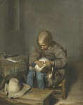 Gerard Terborch, Ein Knabe floht seinen Hund, um 1655 |