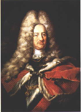 Kurfürst Carl PhilippDer Gründer des Mannheimer Schlosses Kurfürst Carl Philipp von Pfalz-Neuburg (* 1660) trat 1716 die Nachfolge in der Regierung der Kurpfalz an und bezog erstmals wieder Heidelberg als Residenz. 1720 verlegte er die Residenz der Kurpfalz nach Mannheim und nahm damit Düsseldorf die Hoffnung auf Rückkehr des pfälzischen Hofes. Vor seinem Regierungsantritt in der Pfalz war Carl Philipp österreichischer Gubernator in Tirol. |