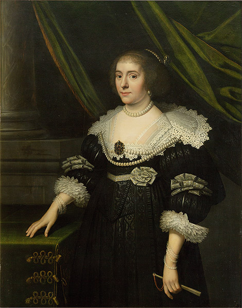 Unten: M. J. van Mierevelt: Porträt der Amalia von Solms, um 1640.
