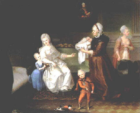 Der kurpfälzische Hof an der Mannheimer ResidenzJosepha Gräfin Heydeck mit ihren und des Kurfürsten Carl Theodor legitimierten Kindern. Nach ihrem Tod angefertigtes Historienbild von Heinrich C. Brandt, München, um 1785 Reiß-Museum, Kunst- und Stadtgeschichtliche Sammlungen |