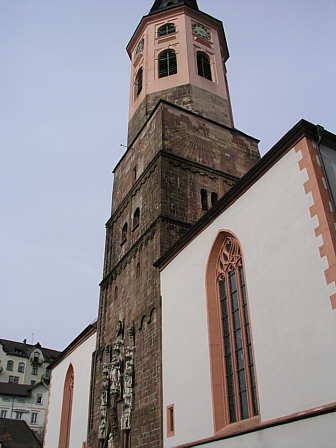 Der Turm hat noch sein romanisches Untergeschoss, die Haube wurde 1718/19 von J. M. Rohrer ersetzt.